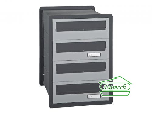 - E4/3aw – skrzynka dla trzech lokatorów wyposażona w ażurowy wziernik oraz wizytownik