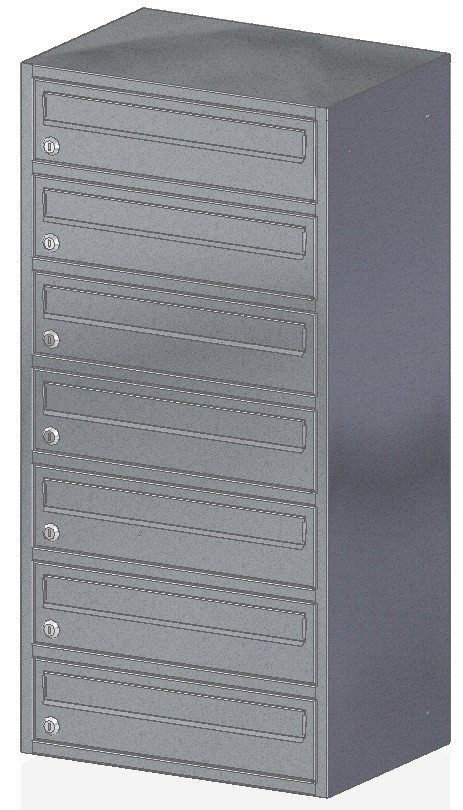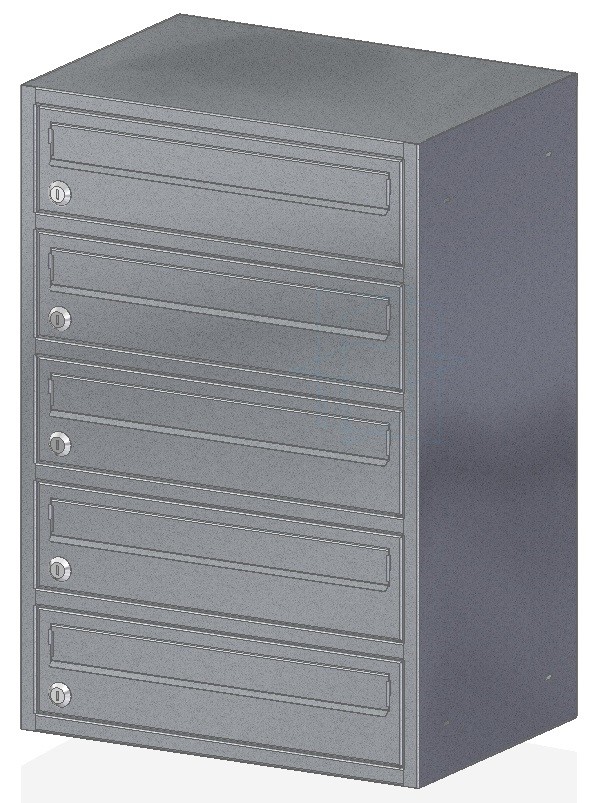 Skrzynka nieprzelotowa przeznaczona do montażu na przegrodzie budowlanej, wewnątrz budynków mieszkalnych. Wrzut korespondencji odbywa się dłuższym bokiem przez odchylenie klapki na zewnątrz do góry skrzynki. Drzwiczki otwierają się na bok.