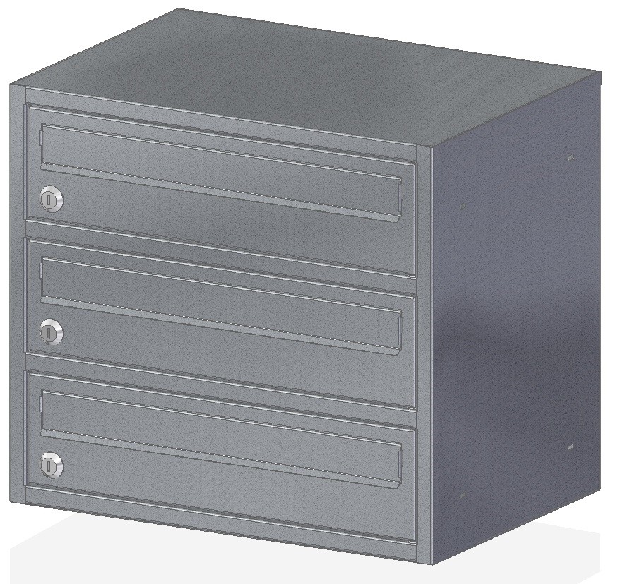 - E8/3aw – skrzynka dla trzech lokatorów wyposażona w ażurowy wziernik oraz wizytownik
