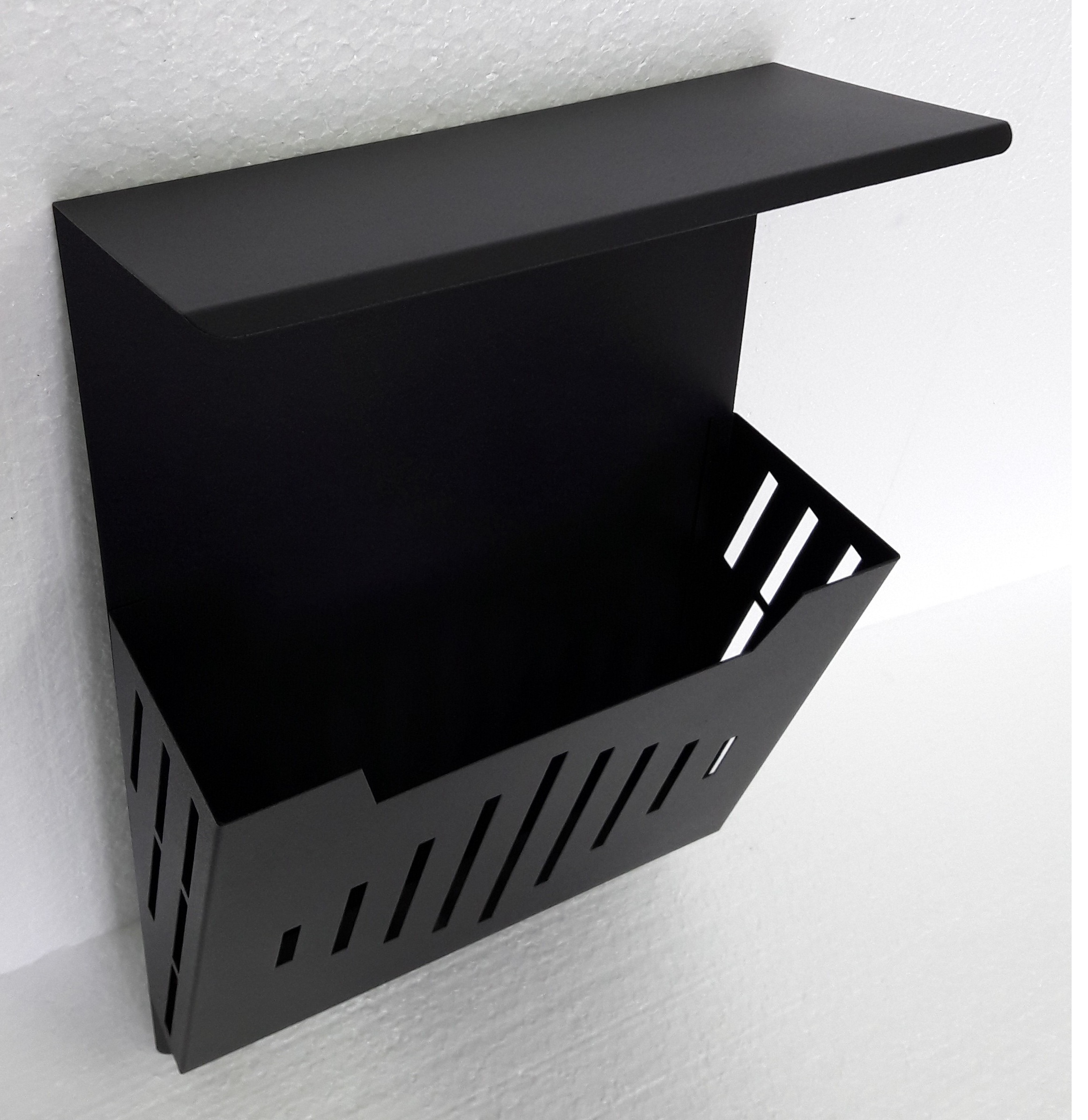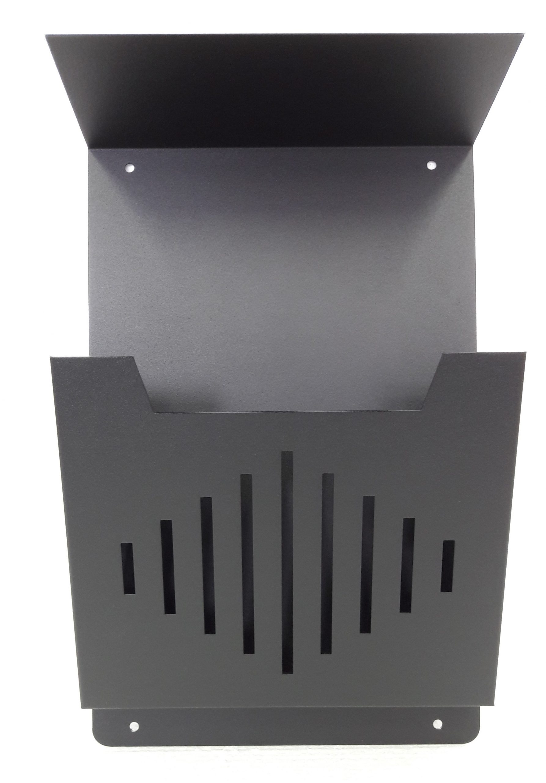 Kosz na reklamy formatu A4 z płytkim wycięciem i daszkiem ochronnym. Skrzynka do montażu na przegrodzie (drzwi, ogrodzenie, ściana, itp.).